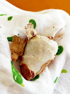 熱いうちに皮をむきポリ袋に入れ、片栗粉と塩を加え、よく潰してこねる。