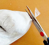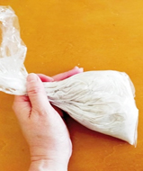 ポリ袋の端を切り、手水をつけて4個から6個に分けて丸型にする。