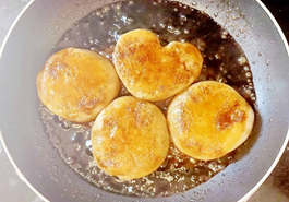フライパンにゴマ油を熱し、こんがり両面を焼き器に盛る。
