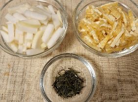 - 仕上げに茹でて刻んだ大根葉とちりめんじゃこを散らすと、彩りよく、味の変化も楽しめます。