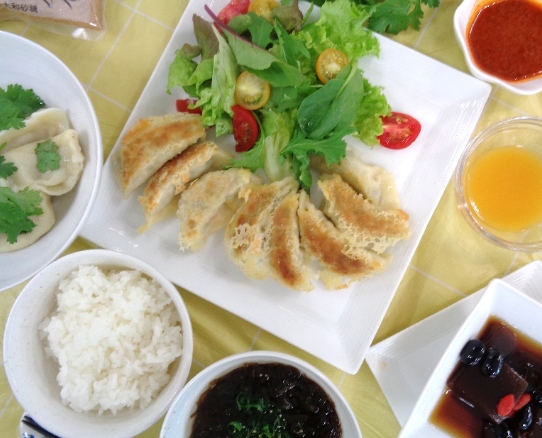 - 手作りの皮の餃子、羽根つき餃子は初めて作りました。